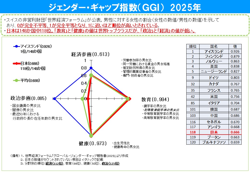 日本のジェンダー・ギャップ指数は118位/148か国 先進国では最下位
